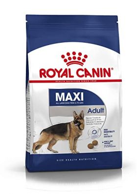 The nutritional requirements of a larger breed dog versus a smaller breed dog vary greatly, therefore it is essential you feed a balanced diet according to size and other particular sensitivities. ROYAL CANIN Maxi Adult food is specially formulated with your dog's nutritional needs in mind. This food is suitable for large dogs aged 15 months and over with an adult weight ranging between 26-44kg. ROYAL CANIN Maxi dog food contains an exclusive formula to help maintain your dog's digestive health. A high quality protein and a balanced supply of dietary fibre helps to promote optimal digestibility. Most large dogs reach full adult weight at the age of 2, so now is the time to get your dog used to a regular feeding pattern to help maintain a healthy weight. For large dogs, bones and joints can be a particular sensitivity, therefore maintaining your dog's joint health is crucial for the wear and tear it may face due to its size. ROYAL CANIN Maxi Adult food will help maintain an ideal weight that your dog can comfortably support. Feeding your dog ROYAL CANIN Maxi Adult food will give your large dog the best support possible during this life stage, thanks to a complete, balanced, and high-quality level of nutrition. Enriched with omega-3 fatty acids (EPA and DHA), ROYAL CANIN Maxi adult dog food also helps to support and maintain your dog's skin by keeping it healthy and nourished. At ROYAL CANIN we're committed to providing nutritional solutions to your pet's needs. All of our products undergo an extensive quality control process in order to guarantee the optimum quality of food as well as catering to your dog's specific dietary requirements and lifestyle. This means that when your dog eats ROYAL CANIN Maxi Adult, it's getting a complete and balanced diet.